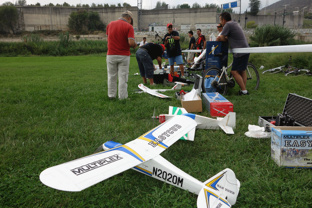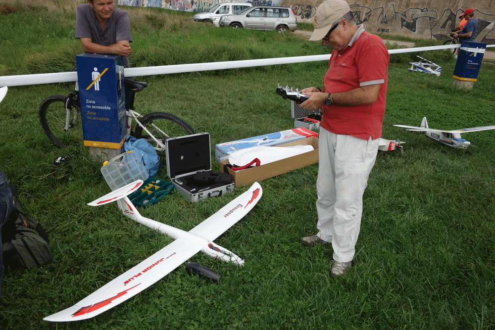 El cesped demasiado alto dificulta los despegues desde el suelo, pero la Fun Cup con flaps a tope, despega desde el suelo en un metro en cualquier clarito y los veleros salen lanzados a mano perfectamente pues es lo suyo y el aterrizaje impecable cesped.