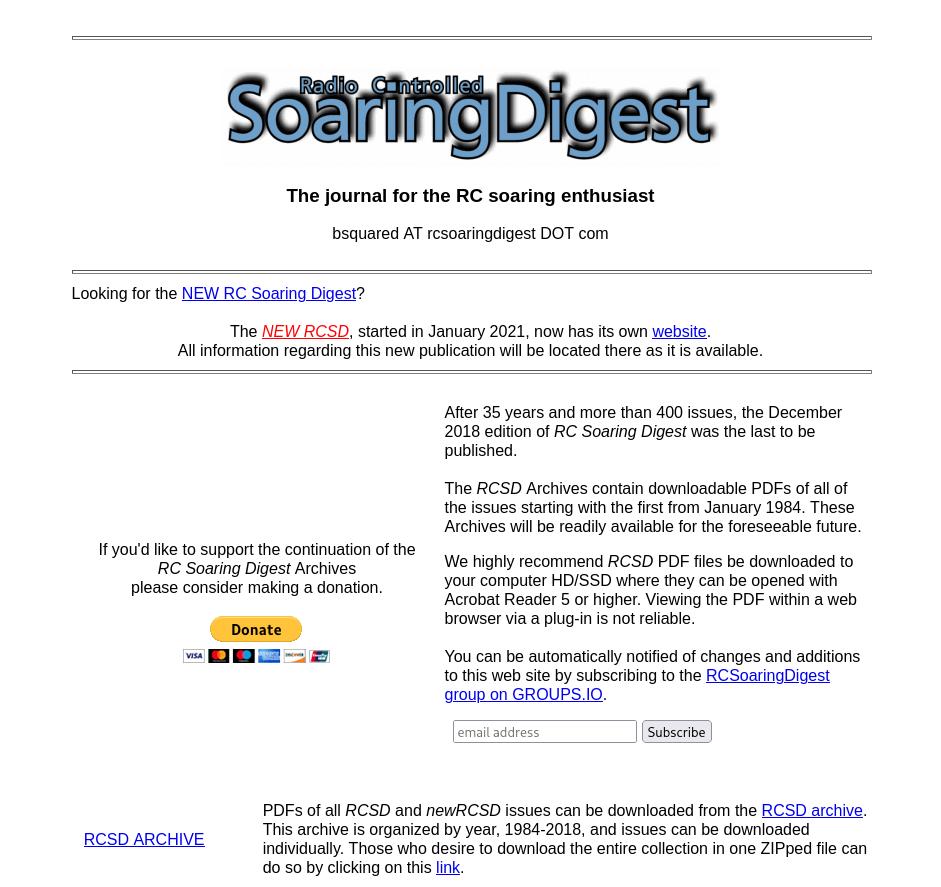 After 35 years and more than 400 issues, the December 2018 edition of RC Soaring Digest was the last to be published.